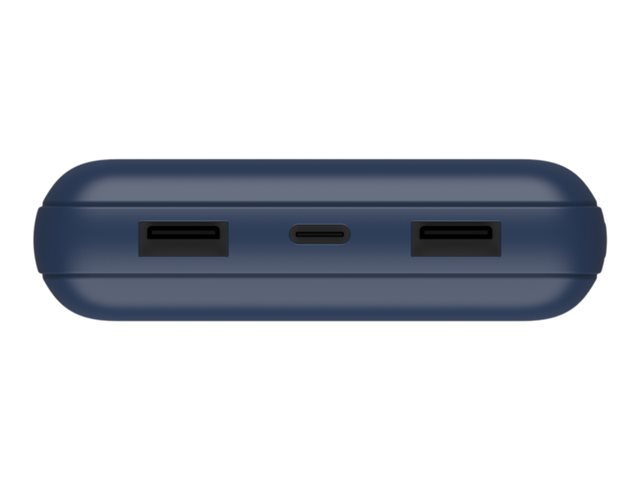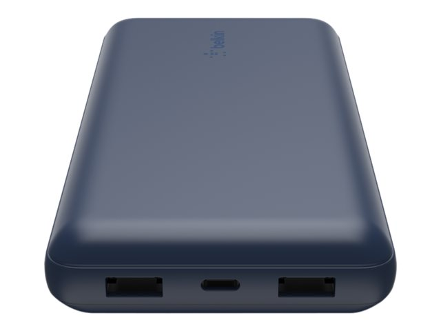 Belkin BOOST CHARGE - Banque d'alimentation - 20000 mAh - 15 Watt - 3 connecteurs de sortie (USB, 24 pin USB-C) - sur le câble : USB-C - bleu BPB012BTBL