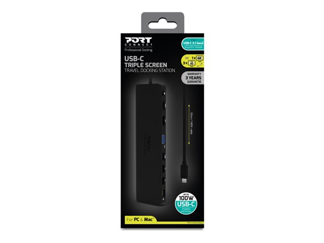 PORT connect TRIPLE SCREEN TRAVEL - Station d'accueil - USB-C 3.1 Gen 2 - VGA, HDMI, DP - 1GbE 901906-W