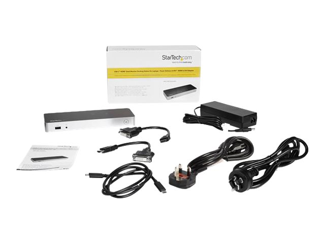 StarTech.com Dual Monitor USB C Docking Station with 60W Power Delivery for Windows Laptops, USB C to HDMI / DVI Dock, USB 3.1 Gen 1 Type C Dock with Charging, Thunderbolt 3 Compatible - 5-Port USB 3.0 Hub (MST30C2HHPDU) - Station d'accueil - USB-C / Thunderbolt 3 - 2 x HDMI - 1GbE - 60 Watt MST30C2HHPDU