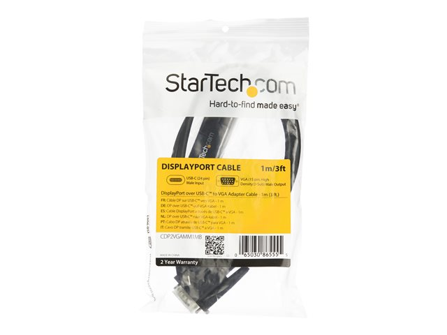 StarTech.com 6ft (2m) USB C to VGA Cable, 1920x1200/1080p USB Type C to VGA Video Active Adapter Cable, Thunderbolt 3 Compatible, Laptop to VGA Monitor/Projector, DP Alt Mode HBR2 Cable - 2m USB-C Video Cable (CDP2VGAMM2MB) - Câble vidéo / USB - 24 pin USB-C (M) pour HD-15 (VGA) (M) - 2 m - support 1920 x 1200 (WUXGA) - noir - pour P/N: TB4CDOCK
