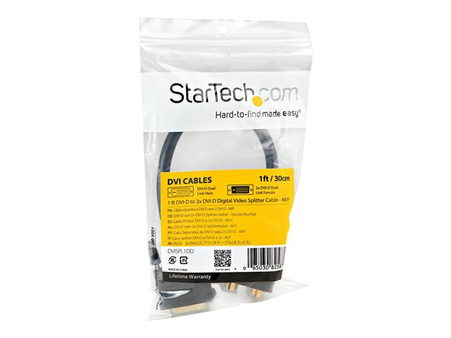 StarTech.com Câble Répartiteur en Y DVI-D vers 2x DVI-D 30 cm - Câble Splitter DVI-D - M/F (DVISPL1DD) - Répartiteur video - liaison double - DVI-D femelle pour DVI-D mâle - 30.5 cm - blindé - noir - pour P/N: DVIDDMM1, DVIDDMM10M, DVIDDMM25, DVIDDMM2M, DVIDDMM3M, DVIDDMM5M DVISPL1DD
