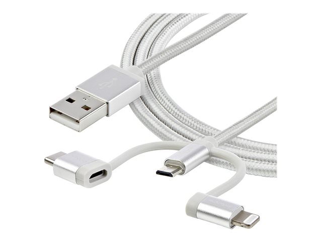 StarTech.com Câble USB multi connecteur de 1 m - Lightning, USB-C, Micro USB (LTCUB1MGR) - Câble USB - USB (M) pour Micro-USB de type B, Lightning, 24 pin USB-C (M) - 1 m - argent