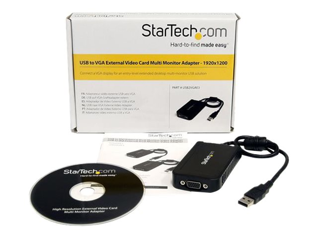 StarTech.com Adaptateur / Convertisseur vidéo USB 2.0 vers VGA - Carte graphique externe - Mâle / Femelle - 1920x1200 - Adaptateur USB / VGA - Conformité TAA - USB (M) pour HD-15 (VGA) (F) - USB 2.0 - 50 cm - support 1920 x 1200 (WUXGA) - gris - pour P/N: MXT101MM USB2VGAE3