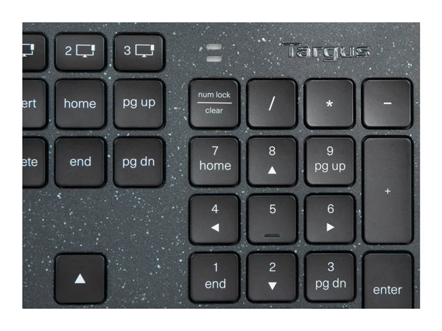 Le clavier français Targus Sustainable Energy Harvesting EcoSmart associe le Bluetooth et des technologies solaires avancées à des matériaux recyclés post-consommation dans un clavier de taille normale respectueux de l'environnement. Fabriqué à partir de 85 % de matériaux recyclés et doté d'une protection antimicrobienne, ce clavier aide à prévenir la croissance des micro-organismes, tout en contribuant à la protection de l'environnement - même son emballage est recyclé. Il est principalement alimenté par des cellules solaires optimisées pour récolter la lumière à partir d'une variété de conditions lumineuses (y compris l'éclairage artificiel intérieur) et se connecte à un maximum de 3 appareils à l'aide du SoC Bluetooth, ce qui signifie que ses capacités de consommation extrêmement faible le rendent 3 à 4 fois plus économe en énergie que d'autres claviers Bluetooth. De plus, ce clavier est doté de la protection antimicrobienne DefenseGuard de Targus. Contrairement aux sprays appliqués localement, ce clavier DefenseGuard est imprégné d'additifs antimicrobiens qui ne s'usent pas et ne s'effacent pas au lavage, et qui agissent en continu pendant toute la durée de vie du produit.