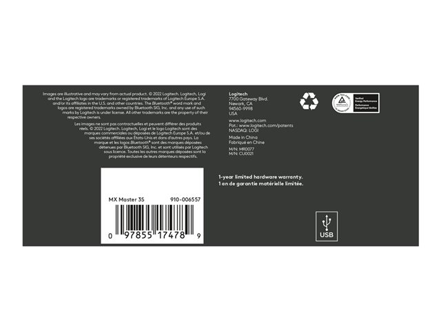 Logitech Master Series MX Master 3S - Souris - ergonomique - optique - 7 boutons - sans fil - Bluetooth, 2.4 GHz - récepteur USB Logitech Logi Bolt - graphite