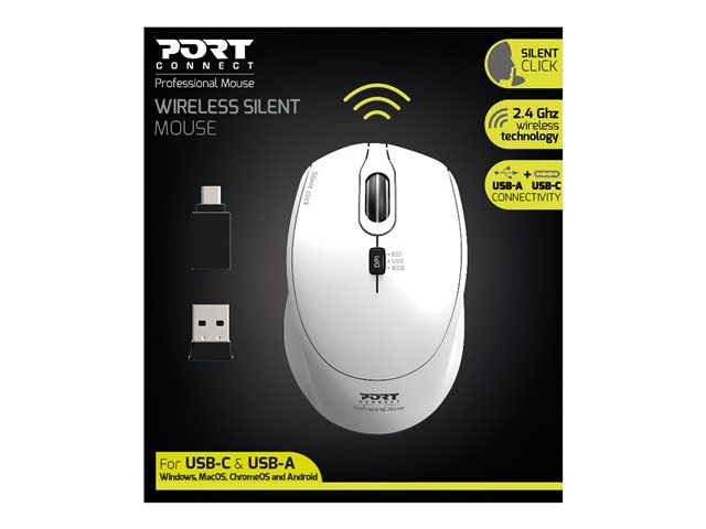 PORT Connect SILENT - Souris - optique - sans fil - 2.4 GHz - récepteurs sans fil USB / USB-C - blanc