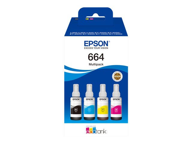 Epson EcoTank 664 - Pack de 4 - noir, jaune, cyan, magenta - original - recharge d'encre - pour Epson L380, L395, L495; EcoTank ET-2650, L1455, L656; EcoTank ITS L3050, L3060, L3070
