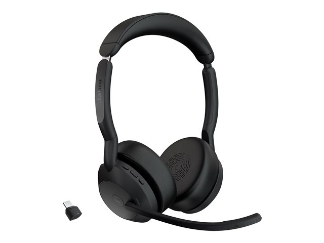 Jabra Evolve2 55 MS Stereo - Micro-casque - sur-oreille - Bluetooth - sans fil - Suppresseur de bruit actif - USB-C - noir - certifié Zoom, Cisco Webex Certified, Certifié Alcatel-Lucent, Certifié Avaya, Certifié Unify, Certifié MFi, Certifié Google Meet, Certifié Amazon Chime 25599-999-899
