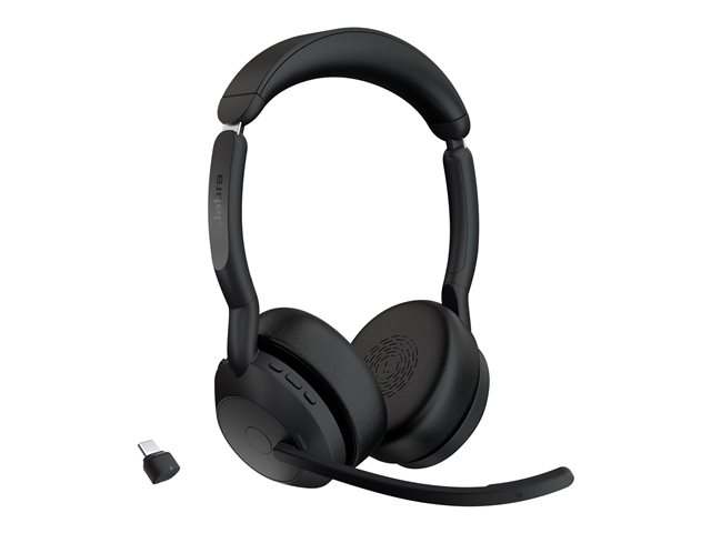 Jabra Evolve2 55 UC Stereo - Micro-casque - sur-oreille - Bluetooth - sans fil - Suppresseur de bruit actif - USB-C - noir - certifié Zoom, Cisco Webex Certified, Certifié Alcatel-Lucent, Certifié Avaya, Certifié Unify, Certifié MFi, Certifié Google Meet, Certifié Amazon Chime 25599-989-899