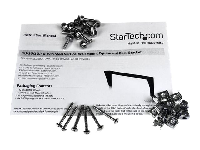 StarTech.com Support mural en acier pour rack 2U - 48 cm - Support de montage - montable sur mur - noir - 2U - 19" - pour P/N: SV831DUSBUK