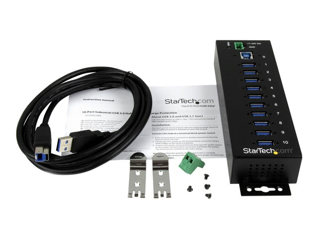 StarTech.com Hub USB 3.0 - 10 ports - Industriel Concentrateur USB - Avec protection contre surtensions/DES - Métal - Rail DIN - Alimenté - Concentrateur (hub) - 10 x SuperSpeed USB 3.0 - Montage sur rail DIN - Tension CC - pour P/N: ITB20D3250, USB312SAT3CB, USB315CB2M, USBLT1MWS, USBLT2MBR, USBLTM1MBK, USBLTM1MWH ST1030USBM