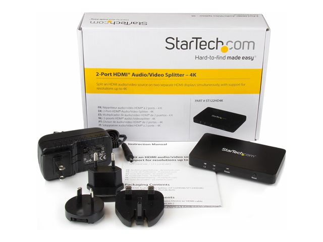 Le répartiteur HDMI 4K à 2 ports ST122HD4K vous permet de partager deux écrans ou vidéoprojecteurs HDMI avec un périphérique source audio-vidéo HDMI, comme un ordinateur, un lecteur Blu-ray ou un boîtier décodeur de télévision par câble.